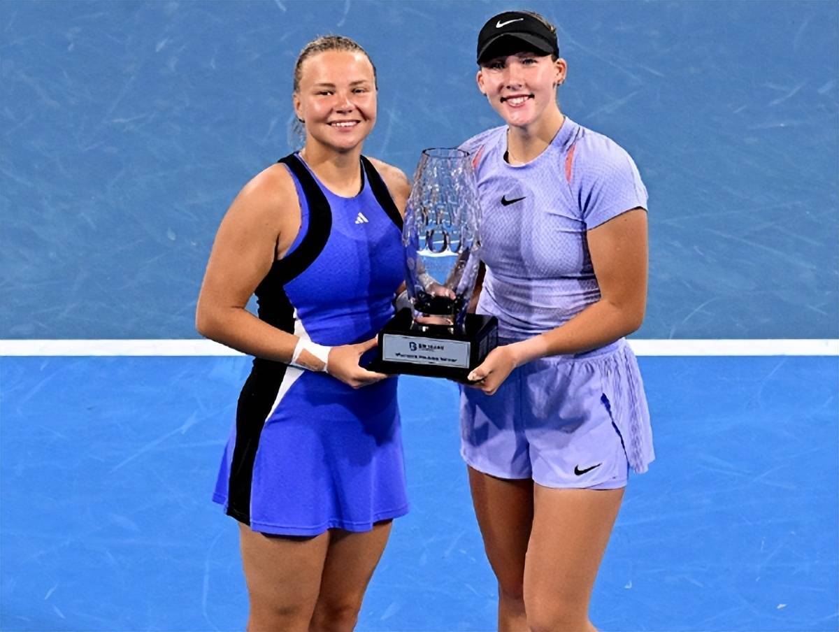 澳网开赛在即,卫冕冠军萨巴伦卡选择在澳大利亚以赛代练进行备战,WTA500布里斯班站,萨巴伦卡表现强势,以不失一盘的战绩先后横扫墨西哥选手扎拉祖哈、哈萨克斯坦名将普丁塞娃、捷克名将布兹科娃晋级四强,半决赛面对8号种子米拉·安德列娃,萨巴伦卡化解了对手所拿到的全部8个破发点,最终以6-3、6-2完胜对手,继续保持不失一盘的金身,强势杀进决赛!另外一场半决赛,从资格赛突围的波琳娜·库德梅托娃继续扮演黑马角色,以6-4和6-3直落两盘淘汰卡利尼娜,新赛季取得一波7连胜闯入职业生涯首个WTA巡回赛决赛。WTA500布里斯班站的决赛,将会上演资格赛黑马挑战世界第一的疯狂剧本,波琳娜·库德梅托娃若能挑落世界第一萨巴伦卡夺冠,将会为2025赛季带来一个奇迹般的开始。布里斯班站的女双冠军已经决出,米拉·安德列娃/施耐德以7-6(6)、7-5力克韩天遇/卡林斯卡娅成功捧杯。