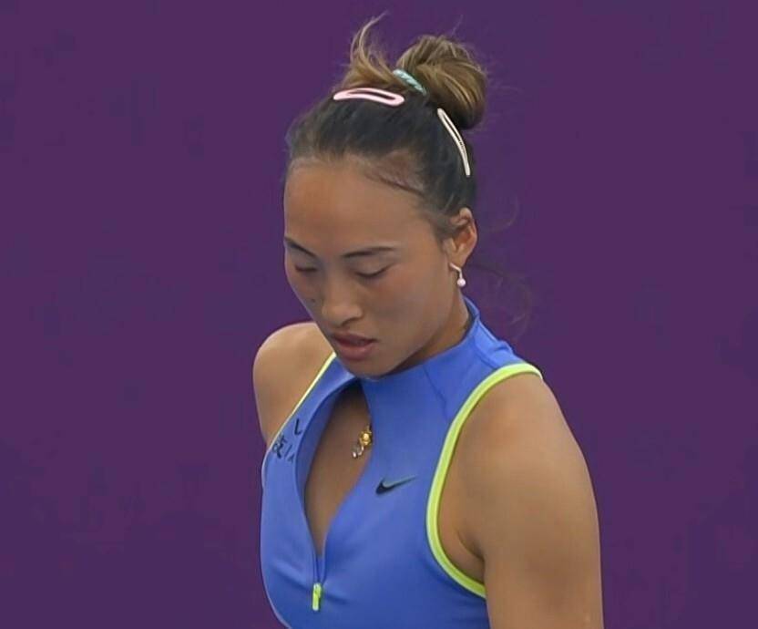 但网球不是纸上谈兵。 比赛是在硬地上进行的,球速快,对发球和手臂的冲击力不小。 直播镜头给到郑钦文时,能清楚地看到她右肘上贴着的肌肉贴。 评论员不断重复:“这是对她手术部位的一次直接检验。 ”